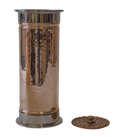 Fabricada em cobre, com uniões clamp, a cesta de botânicos é um acessório imprescindível devido à sua enorme versatilidade, tanto para aromatizar os seus destilados, ou a funcionar apenas para criar mais refluxo.
